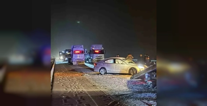 Kırıkkale'de etkili olan kar yağışı, zincirleme bir trafik kazasına neden oldu. Kazada 1 kişi yaralanırken, olay anı bir araç kamerasıyla kaydedildi.