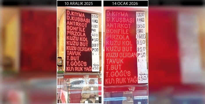 2025'in son haftasından itibaren et fiyatlarına yeni zamlar yansırken, marketlerde dana kıyma fiyatı 10 Aralık'ta 950 TL iken, 10 Ocak 2026'da yüzde 5 artışla 1.000 TL'ye yükseldi. Ayrıca, pirzola fiyatı 1.600 TL olarak belirlendi. 2025 yılı ocak ayında 600 TL'ye satılan dana kuşbaşı fiyatı ise bu yıl yüzde 48.3'lük artışla 890 TL'ye ulaştı.