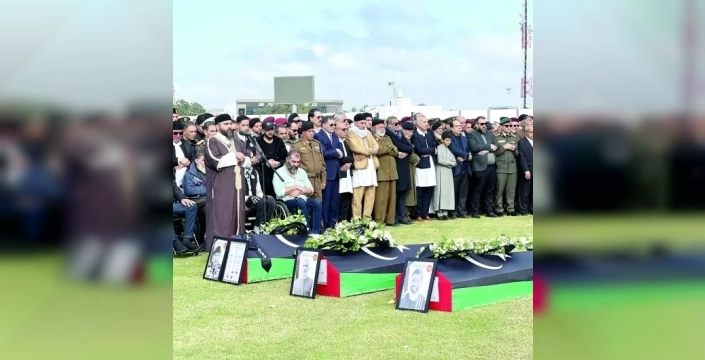 Libya'nın Misrata kentindeki Medine Riyadiye Stadı'nda, hayatını kaybeden askeri yetkililer için görkemli bir cenaze töreni düzenlendi. Törene, Başbakan Abdulhamid Dibeybe başta olmak üzere Ulaştırma Bakanı Muhammed eşŞuhubi ve Genelkurmay Başkanı Orgeneral Selçuk Bayraktaroğlu gibi üst düzey yetkililer katıldı.