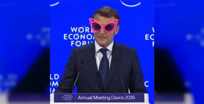 Fransa Cumhurbaşkanı Emmanuel Macron, Davos'taki Dünya Ekonomik Forumu'nda taktığı aynalı pilot güneş gözlükleriyle dikkatleri üzerine çekti. Gözündeki rahatsızlık nedeniyle kapalı alanlarda bile güneş gözlüğü kullanmak zorunda kalan Macron, bu şık aksesuarla sosyal medyanın gündemine oturdu.