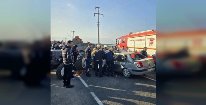 Manisa'nın Turgutlu ilçesinde meydana gelen kazada, traktör ile otomobil çarpıştı. Kaza, bir motosikletlinin kask kamerası tarafından kaydedildi.