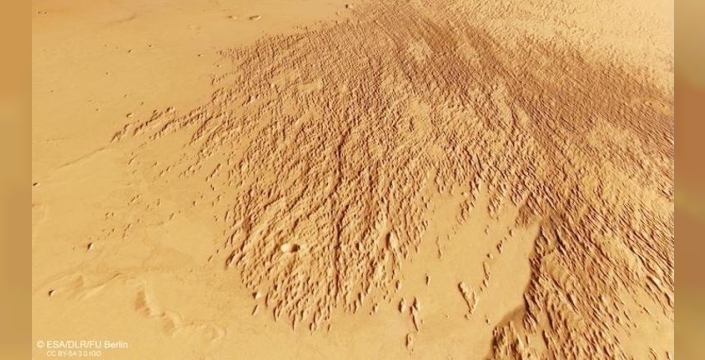 Avrupa Uzay Ajansı’nın (ESA) Mars Express yörünge aracı, Eumenides Dorsum dağları yakınlarında gizemli yapılar keşfetti. Görüntülerdeki “yardang” olarak adlandırılan uzun sırtlar, aynı yöne doğru eğilip kıvrılıyor. ESA, bu yapının rüzgarın hangi yönden estiğini gösterdiğini belirtiyor.
