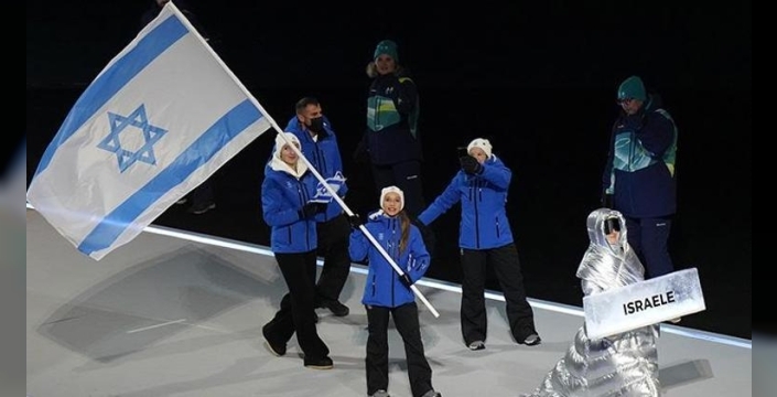 Açılış töreni sırasında İsrailli sporcuların geçişi, tribünlerdeki protestolarla gölgelendi. Bazı izleyiciler İsrailli kafileyi yuhalarken, yükselen tepkiler yüksek müzik sesiyle bastırılmaya çalışıldı. Sosyal medyada da İsrail'in olimpiyatlarda yer almasına yönelik eleştiriler dikkat çekti. İsrailli kayakçı Barnabas Szollos, törenden önce yaptığı açıklamada, "Hazırlıklıyım, istediklerini yapabilirler" diyerek protestolara hazır olduğunu belirtti.