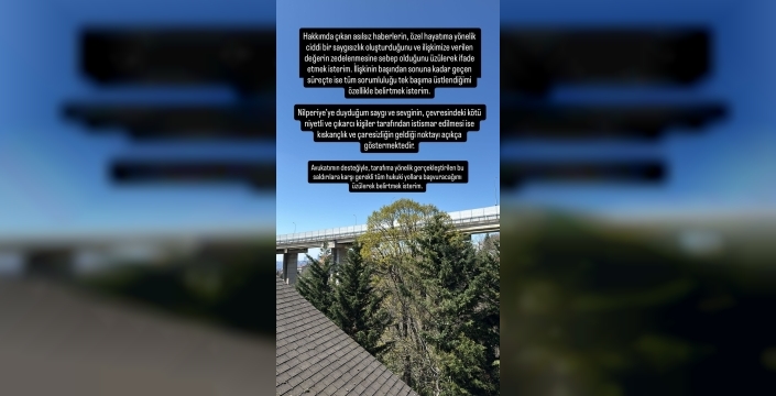 Baturalp Bekar, konuyla ilgili yaptığı açıklamada, ''Hakkımda çıkan asılsız haberlerin, özel hayatıma yönelik ciddi bir saygısızlık oluşturduğunu ve ilişkimize verilen değerin zedelenmesine sebep olduğunu üzülerek ifade etmek isterim'' dedi. Bekar, ilişkinin tüm sürecinde sorumluluğu üstlendiğini de vurguladı. Ayrıca, Nilperi'ye olan saygısının kötü niyetli kişiler tarafından istismar edildiğini belirtti. Bu sebeple, avukatının desteğiyle hukuki yollara başvuracağını ifade etti.