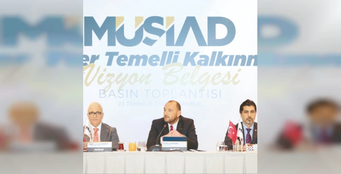 MÜSİAD Genel Başkanı Burhan Özdemir, yeni vizyon belgesinin stratejik 7 ana alana dayandığını ve yeni yüzyılın Türkiye'si için yükselen bir kalkınma modeli inşa etmeyi hedeflediklerini açıkladı.