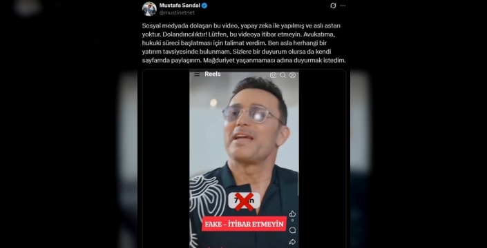 Sandal ayrıca, hiçbir şekilde yatırım tavsiyesinde bulunmadığını vurgulayarak, kendisine ait resmi duyuruların yalnızca kendi sosyal medya hesaplarından paylaşılacağını dile getirdi. Açıklamasının sonunda takipçilerine seslenen Mustafa Sandal, olası mağduriyetlerin önüne geçmek amacıyla bu uyarıyı yaptığını belirtti ve sahte içeriklere karşı dikkatli olunması çağrısında bulundu.