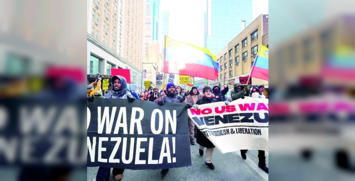 ABD'nin Venezuela'ya yönelik askeri adımlarının ardından savaş karşıtı grupların ülke genelinde düzenlediği protesto çağrıları, New York'taki eylemle en geniş katılımlı gösterilerden birine dönüştü. Farklı etnik kökenlerden, sendikalardan ve sivil toplum kuruluşlarından geniş bir katılımın gözlemlendiği protestoda, göstericiler ellerinde taşıdıkları pankartlarla Manhattan sokaklarında yürüdü. Yürüyüş boyunca "ABD, Venezuela’nın üstünden elini çek", "Petrol için savaşma" ve "Venezuela’da savaş istemiyoruz" gibi sloganlar atıldı.