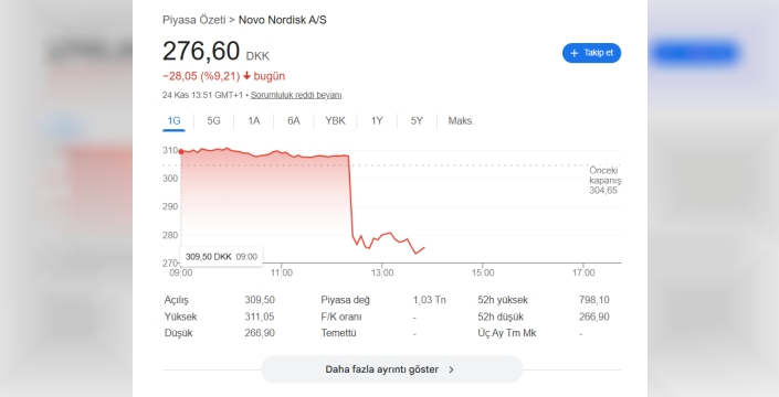 Novo Nordisk hisseleri bir gün içinde yaklaşık yüzde 9 değer kaybederken, şirketin piyasa değerinden tam 13 milyar dolar silindi. Bu sonuçlar, GLP-1 sınıfı ilaçların Alzheimer için umut olup olmayacağına dair beklentileri ciddi şekilde sarstı ve sektörde büyük bir hayal kırıklığı yarattı.