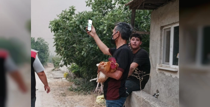Köydeki büyük ve küçükbaş hayvanlar da tahliye edildi. Bir vatandaşın kucağında horozuyla köyden ayrılırken çekilen görüntüsü ise yürekleri burktu. Alevler köye yaklaşık 100 metre kadar yaklaşmış durumda. Birçok ekip, yangının yayılmasını önlemek için çalışmalarına devam ediyor.