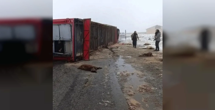 Ağrı'nın Patnos ilçesinde meydana gelen trafik kazasında, küçükbaş hayvan yüklü bir tırın devrilmesi sonucu 10 hayvan telef oldu.