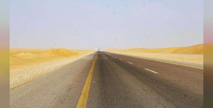 Suudi Arabistan'da, dünyanın en büyük kesintisiz kum çölü Rubülhalis (Boş Mahalle) boyunca uzanan, tam 256 kilometre boyunca tek bir virajın bile bulunmadığı inanılmaz bir yol inşa edildi.