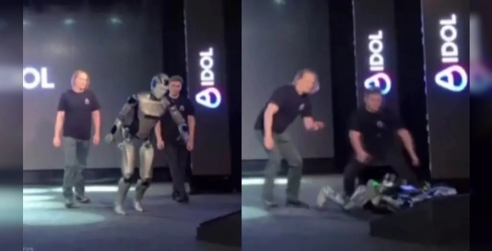 95 kilogram ağırlığındaki Aidol adlı robot, yürüdüğü sırada dengesini kaybederek yere kapaklandı. Düşüş sırasında robotun sırt bölümündeki panelin de gövdeden ayrıldığı görüldü. Görevliler, robotu sahneden sürükleyerek çıkarmak zorunda kaldı. Mühendisler, bu talihsiz olayın kalibrasyon hatası ve aydınlatma sorunlarından kaynaklandığını ifade ettiler.