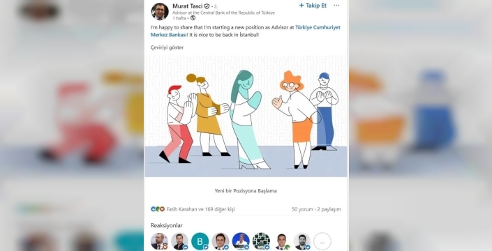 Murat Taşçı, yeni görevine başladığını profesyonel iş ağı LinkedIn üzerinden duyurdu. İlginç bir şekilde, bu paylaşım Taşçı'nın profilindeki tek paylaşım olarak kayıtlara geçerken, tebrik mesajları yağmuru başladı. Tebrik edenler arasında TCMB Başkanı Fatih Karahan'ın da bulunması dikkat çekti.