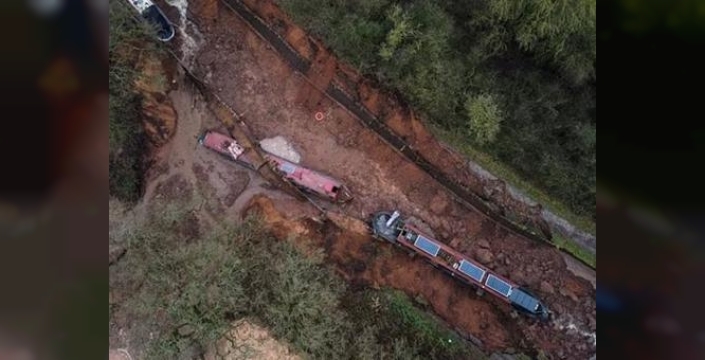İngiltere'nin West Midlands bölgesinde bulunan Shropshire Kanalı'nda pazartesi günü yaşanan olay, bölgeyi adeta felakete sürükledi. Yüzlerce yıllık tarihi bir setin çökmesiyle birlikte kanalda devasa bir obruk meydana geldi. Yetkililer, ani çökmenin ardından kanalın sularının kontrolsüz bir şekilde yakındaki bir tarlaya aktığını bildirdi.