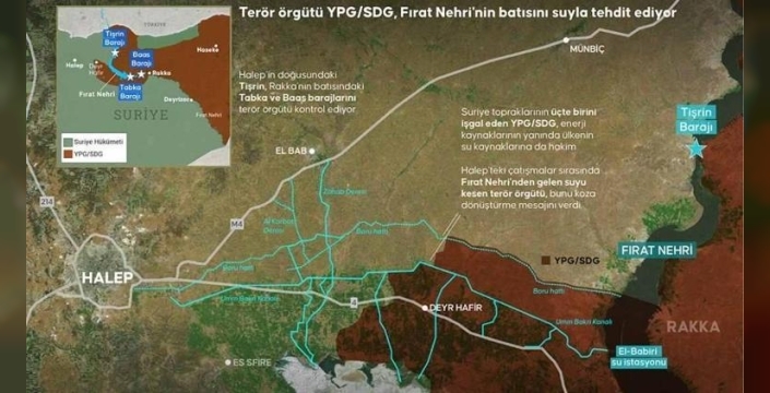 Suriye'de topraklarının önemli bir kısmını işgal altında tutan YPG/SDG terör örgütü, Fırat Nehri üzerindeki barajlar ve su kaynakları üzerindeki kontrolünü kullanarak yeni bir tehdit unsuru oluşturuyor. Halep kent merkezi ve çevresindeki milyonlarca insanı susuz bırakma riskiyle karşı karşıya bırakan örgütün bu eylemi, uluslararası hukuk açısından da ciddi tartışmalara yol açıyor.