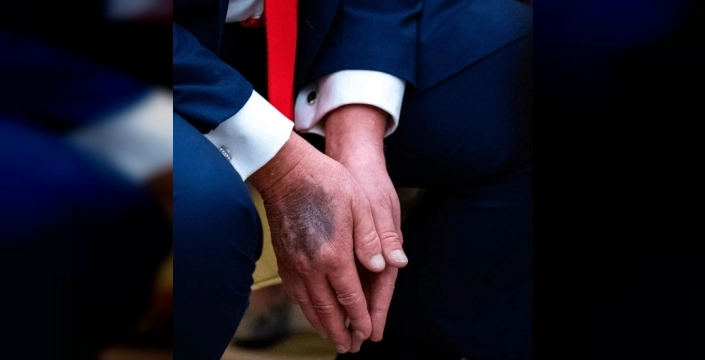 ABD medyası, geçen hafta, 79 yaşında göreve başlayan en yaşlı başkan olan Trump'ın sağ elindeki aylardır geçmeyen morluğu ve sol elindeki renk değişimlerini tekrar gündeme getirmişti. Beyaz Saray, daha önce bu morlukları, Trump'ın sürekli el sıkışmasına ve aspirin kullanımına bağlamıştı. Trump, seçim döneminde eski Başkan Joe Biden'ı yaşlılık ve sağlık sorunları nedeniyle eleştirmişti.
