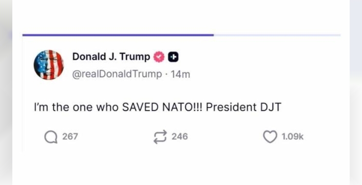 ABD Başkanı Donald Trump, Grönland ve Avrupa ülkeleriyle yaşanan gerginliklerin devam ettiği bir dönemde dikkat çekici bir paylaşımda bulundu. Truth Social hesabından yaptığı açıklamada, 'NATO'yu kurtaran benim' ifadelerini kullandı.