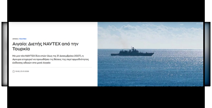 Türkiye'nin Ege Denizi'nde 31 Aralık 2027'ye kadar geçerli olacak NAVTEX yayımlaması, Yunanistan'da büyük yankı uyandırdı. Yunan basını, bu olağan dışı uzun süreli ilanı, 'savunmaya hapsolduk' şeklinde yorumlayarak endişelerini dile getirdi.