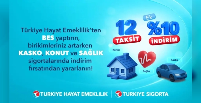 Türkiye Hayat Emeklilik, Bireysel Emeklilik Sistemi'ne (BES) katılımı artırmak amacıyla yeni bir kampanya başlattı. Kampanya, 1 Ocak ile 30 Haziran 2026 tarihleri arasında en az 2.500 Türk Lirası katkı payı ödeyerek yeni BES sözleşmesi başlatan katılımcıları kapsıyor. Bu kişilere, Türkiye Sigorta'nın kasko, konut ve sağlık sigortalarında peşin fiyatına 12 taksit ve ek yüzde 10 indirim avantajı sunuluyor.