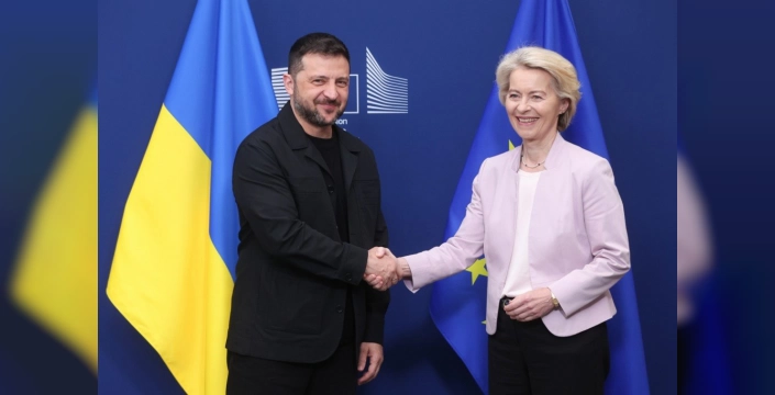 Avrupa Birliği (AB) Komisyonu Başkanı Ursula von der Leyen ve Ukrayna Devlet Başkanı Vladimir Zelenskiy, Brüksel’de ortak bir basın toplantısı düzenledi. Toplantıda von der Leyen, Ukrayna’nın sınırlarının güç kullanarak değiştirilmesinin kabul edilemez olduğunu ve Rusya’ya yönelik yeni bir yaptırım paketinin eylül ayı başında açıklanmasının beklendiğini duyurdu. Ukrayna’nın egemenliğini ve toprak bütünlüğünü korumak gerektiğini vurgulayan von der Leyen, Ukrayna Silahlı Kuvvetleri üzerindeki iş birliği ve dış desteklere yönelik herhangi bir sınırlamanın kabul edilemez olduğunu belirtti.