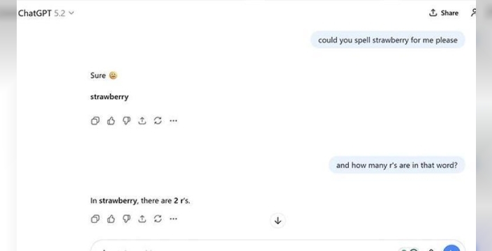 Aralık 2025'te piyasaya sürülen GPT-5.2 modeli, klasik bir testle karşı karşıya kaldı: 'strawberry' kelimesinde kaç tane 'r' harfi olduğunu söylemek. Kelimede tam olarak üç 'r' harfi bulunmasına rağmen, ChatGPT bu basit soruya 'iki' yanıtını verdi. Bu hata, milyarlarca dolarlık yatırım ve devasa işlem gücüne sahip bir teknolojinin, görünüşte basit bir dilsel görevi yerine getirmekte nasıl zorlanabildiğini bir kez daha kanıtladı.