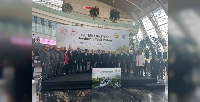 Ulaştırma ve Altyapı Bakanı Abdulkadir Uraloğlu, 'Her Bilet Bir Fidan Sevdamız Yeşil Vatan Kampanyası' kapsamında 11 Kasım 2025 ile 11 Kasım 2026 tarihleri arasında Yüksek Hızlı Tren ile seyahat eden her yolcu adına bir fidan dikileceğini açıkladı. Bu bir yıllık süreçte yıllık ortalama 13 milyon yolcu için 13 milyon fidanın toprakla buluşması hedefleniyor. Yolcular, SMS ve e-sertifika ile dikilen fidan hakkında bilgilendirilecek. Bakan Uraloğlu ayrıca, demiryolu ağını genişletme hedeflerini ve Marmaray projesiyle engellenen karbon emisyonu miktarını da aktararak, Türkiye'nin çevreci ulaşım sistemlerinde öncü bir rol üstlendiğini belirtti. Havalimanlarında kullanılan yerli TOGG'lar ve diğer çevreci projelerle 2053 Net Sıfır Emisyon hedefine doğru emin adımlarla ilerlediklerini sözlerine ekledi.