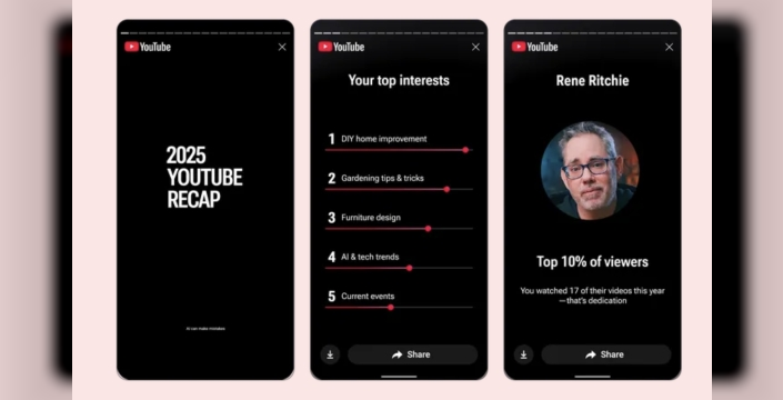 Kullanıcılar ayrıca yılın en çok dinledikleri sanatçılarını ve şarkılarını görebilecek, ancak daha derin içgörüler için geçen hafta yayılmaya başlayan yıllık YouTube Music Recap'ini YouTube Music uygulamasında bulabilecekler. Recap, bugünden itibaren Kuzey Amerika'daki YouTube kullanıcıları için kullanılabilirken, küresel yayılım bu hafta içinde gerçekleşecek. Kullanıcılar Recap'lerini doğrudan YouTube ana sayfasında veya "Sen" sekmesi altında bulabilirler. Özetler, mobil cihazlarda ve masaüstünde erişilebilir durumda. YouTube, yeni özelliğin kullanıcılar tarafından talep edildiğini ve nihai ürüne ulaşmadan önce 50'den fazla farklı konsept testi yaptıklarını belirtiyor.
