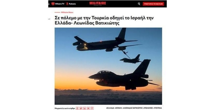 Vatikiotis'e göre İsrail'in temel amacı, Yunanistan ve Güney Kıbrıs'ı kendi savaş doktrininin bir uzantısı haline getirmek. Bu stratejinin, 'Ege'deki Türk-Yunan ihtilafını bir araç olarak kullanarak siyonist devletin etki alanını genişletmek' olarak yorumlandığı belirtildi. İsrailli analist Shay Gal'ın Ta Nea'ya verdiği demeçte, enerji altyapısının 'Mavi Vatan' olarak adlandırılan denizde savunmasız kaldığını öne sürdüğü ve bu yönde Yunan kamuoyunu kışkırttığı iddia edildi. Analizin sonunda Genelkurmay Başkanı Dimitris Houpis'in sözlerine yer veren Vatikiotis, 'Türkiye topraklarına yönelik herhangi bir saldırı durumunda meşruiyet zeminimiz tamamen çöker. Bu senaryoda Türkler çok sert karşılık verir ve karşımızdaki savunma hattımızı tamamen yok ederler. Umarım bu gerçeği fark ettiğimizde çok geç olmaz' ifadesini aktardı. Vatikiotis, İsrail'in geçmişte Filistin, Mısır, Suriye ve Lübnan'da izlediği politikaların benzerini bugün Güney Kıbrıs'ı bir tür koloniye dönüştürmek için uyguladığını da öne sürdü.