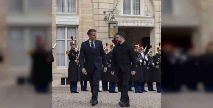 Ukrayna Devlet Başkanı Vladimir Zelenski, Fransa'nın başkenti Paris'e gerçekleştirdiği ziyaret kapsamında Fransa Cumhurbaşkanı Emmanuel Macron ile bir araya geldi. Zelenski, Elysee Sarayı'nda Macron tarafından resmi törenle karşılandı.